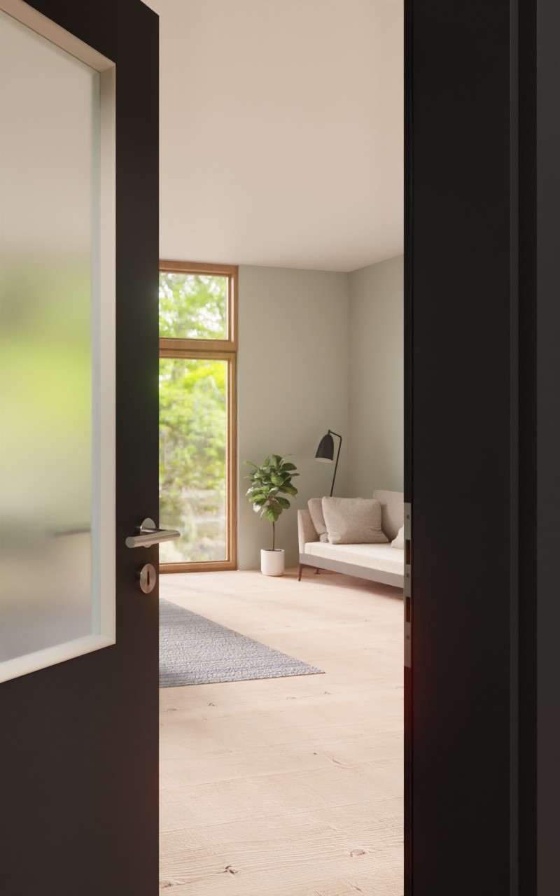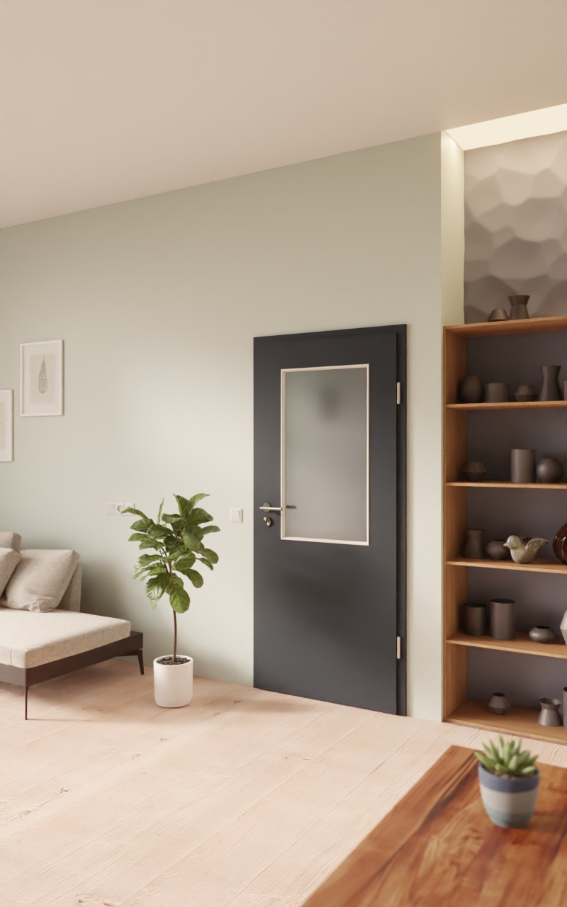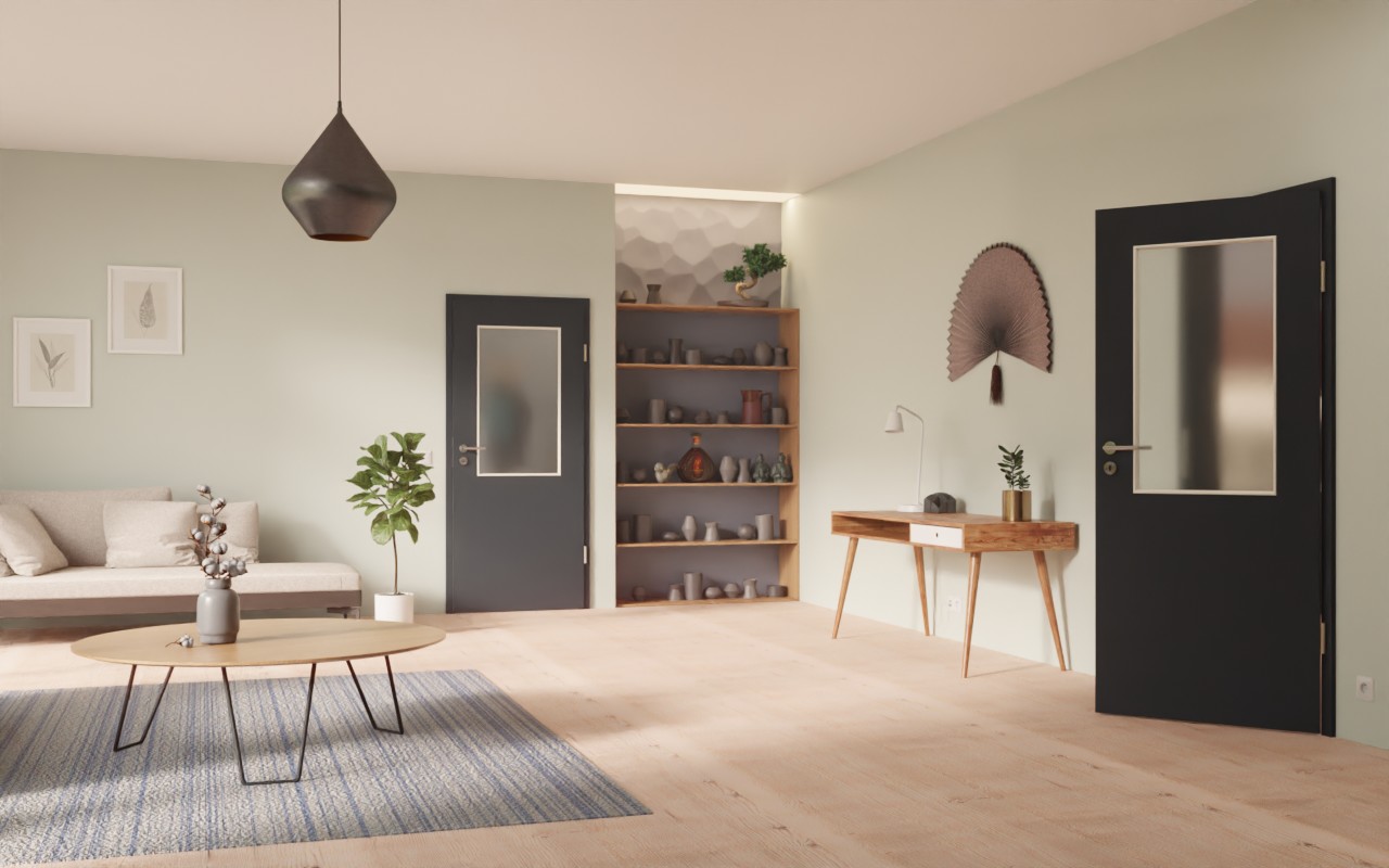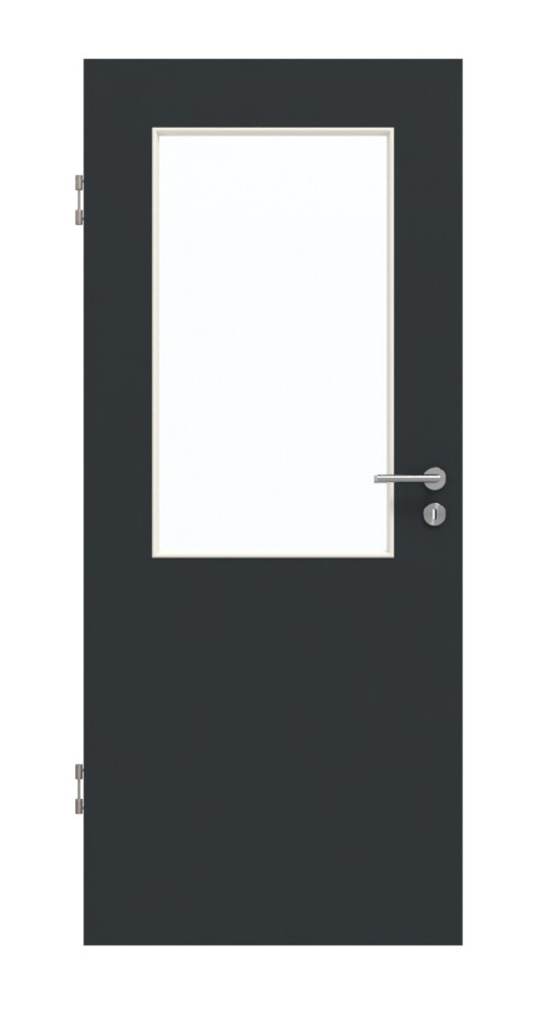 Praktyczne drzwi wewnętrzne w dekorze HPL U12000SD Wulkaniczna czerń z eleganckim przeszkleniem: