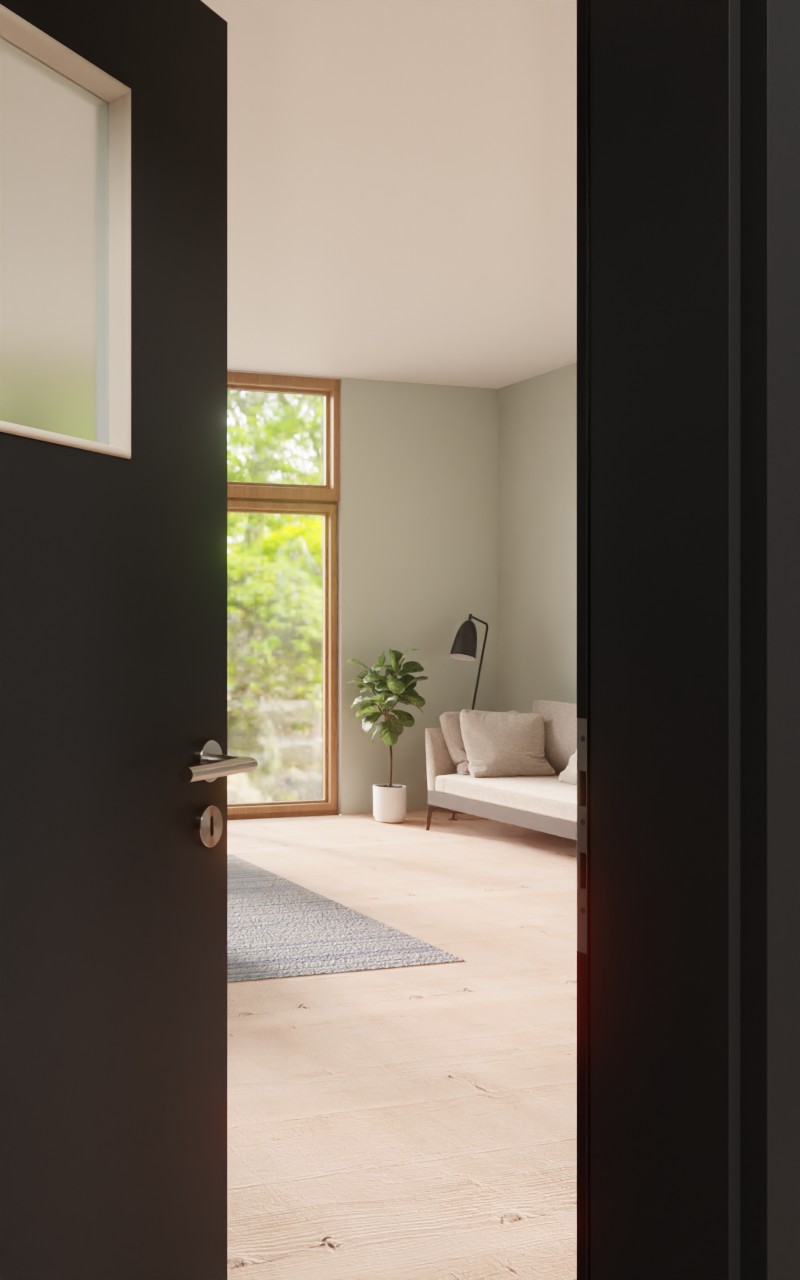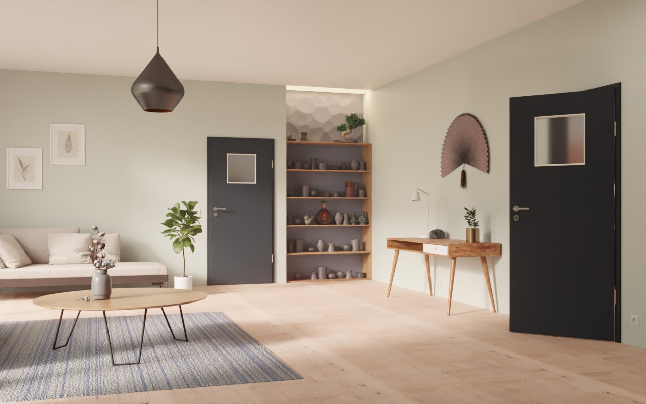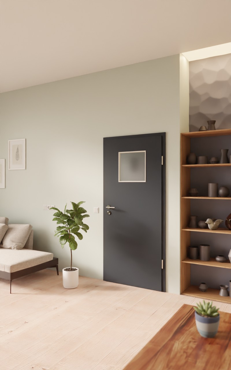 Wysokiej jakości drzwi wewnętrzne w dekorze HPL U12000SD Wulkanowa czerń z pięknym przeszkleniem: