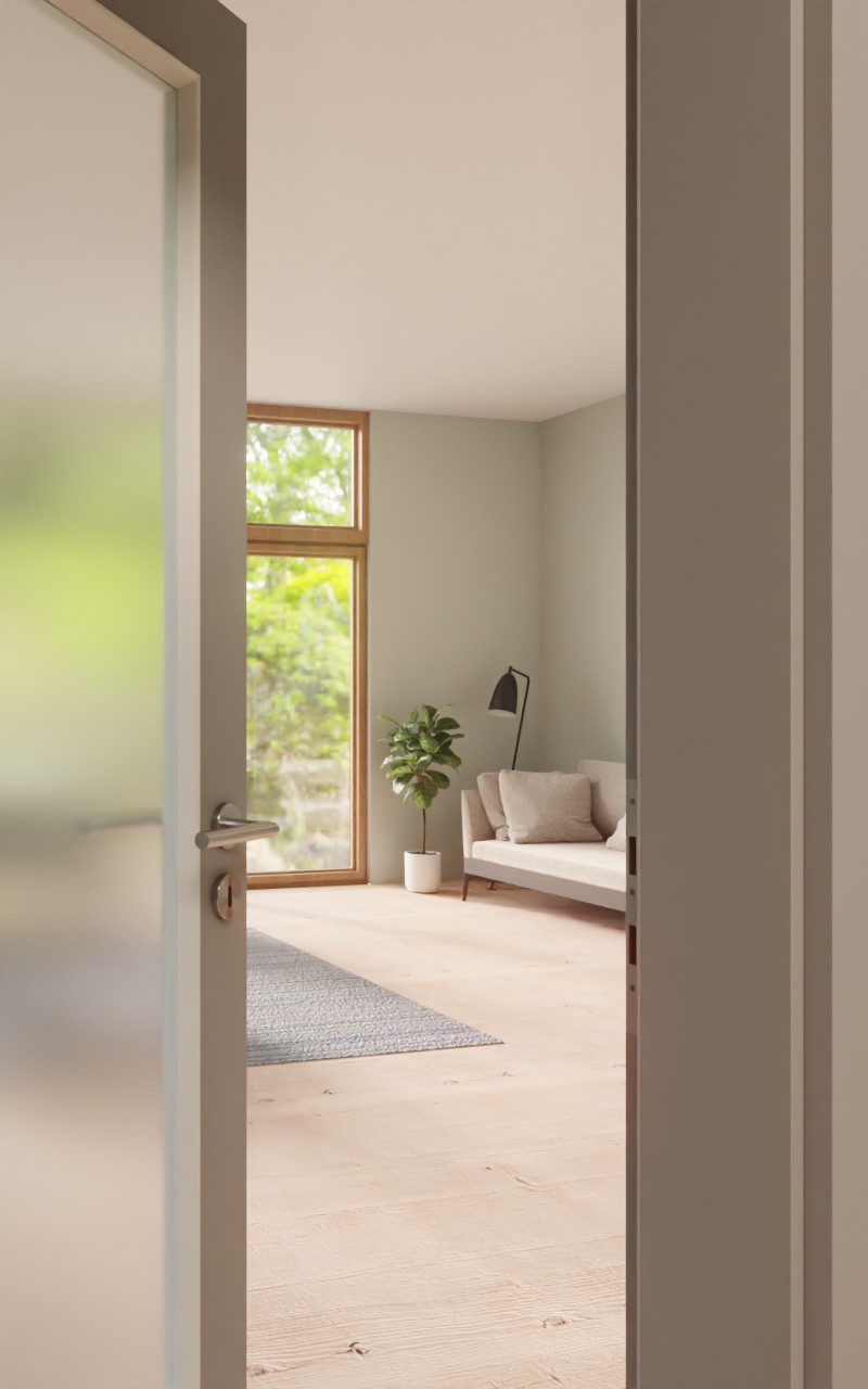 Łatwa w pielęgnacji drzwi wewnętrzne w dekorze HPL U12115SD Platingrau z eleganckim przeszkleniem: