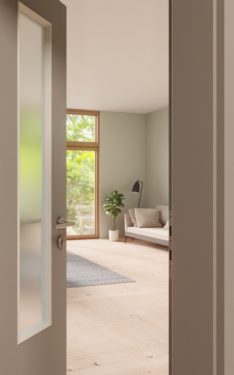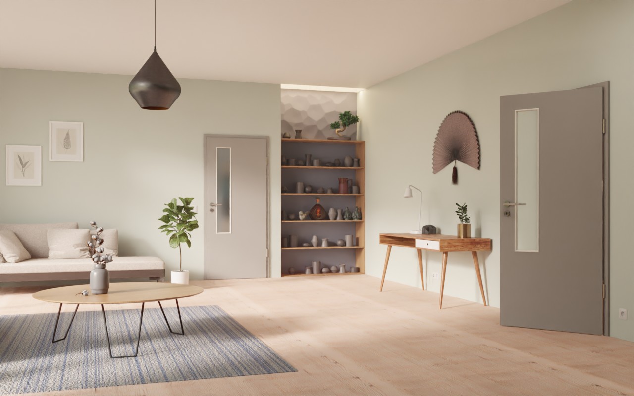 Praktyczne drzwi wewnętrzne w dekorze HPL U12115SD Platingrau z eleganckim przeszkleniem:
