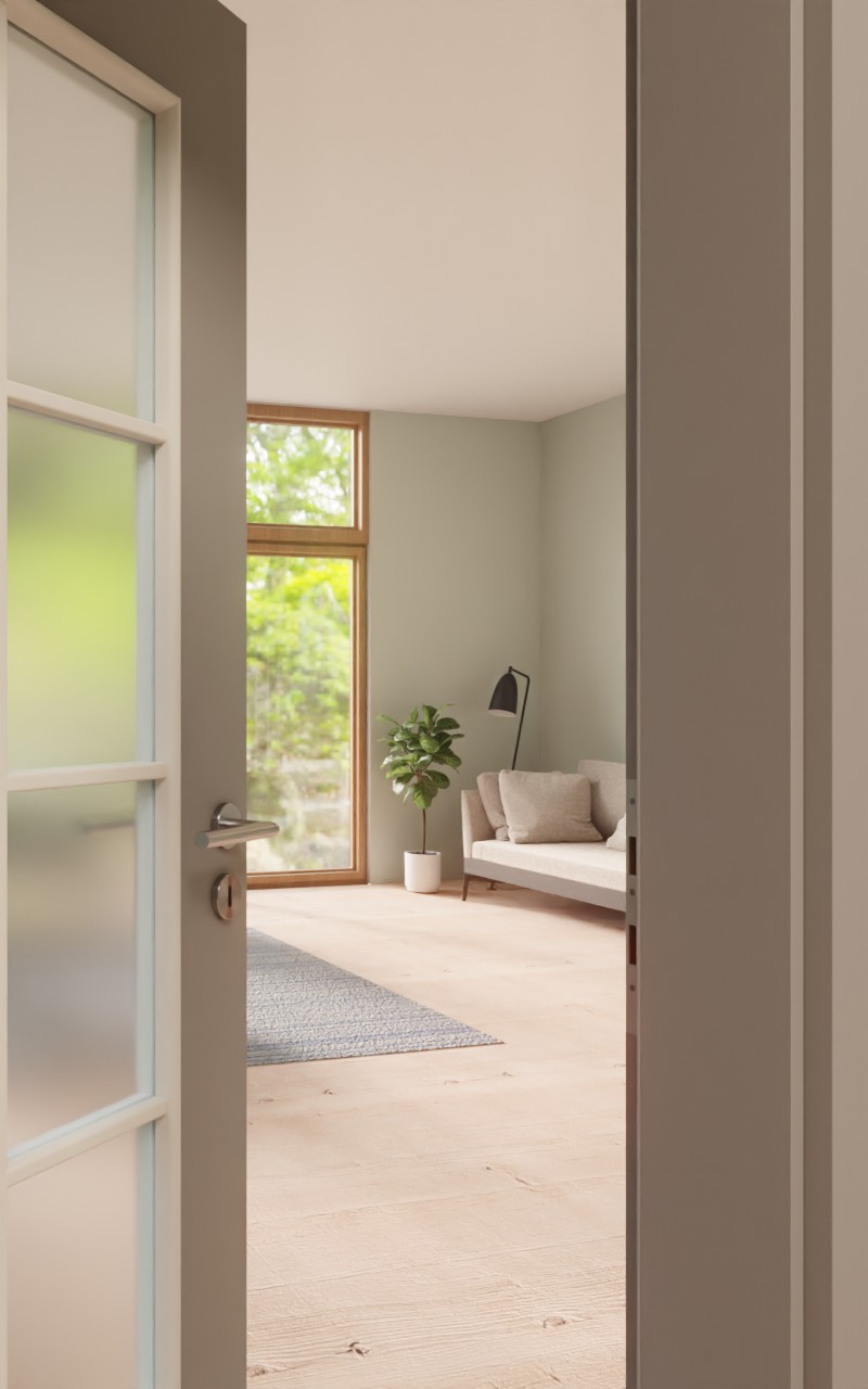 Odporne na uderzenia drzwi wewnętrzne w dekorze HPL U12115SD Platingrau z atrakcyjnym przeszkleniem: