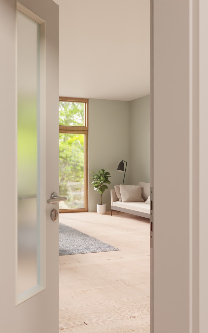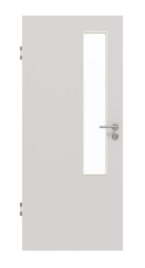 Zapraszające drzwi pokojowe w dekorze HPL U12188SD jasnoszarym z atrakcyjnym przeszkleniem: