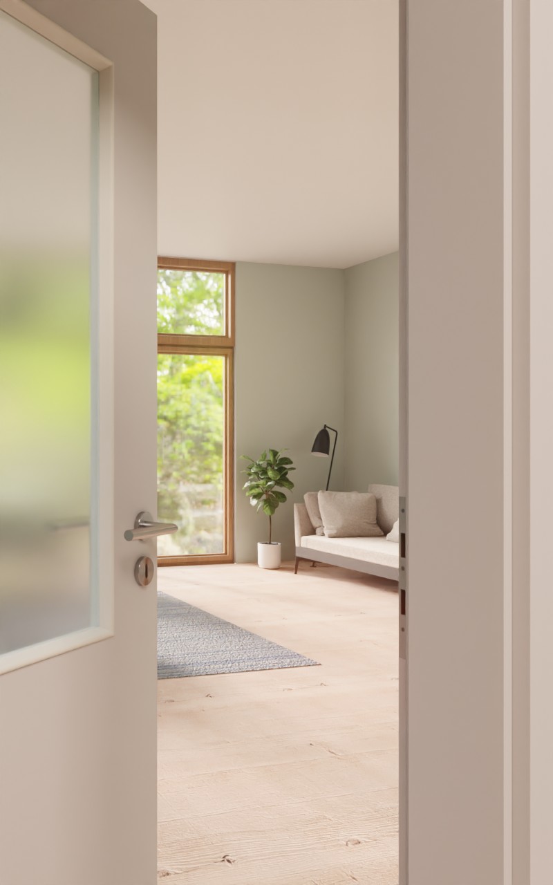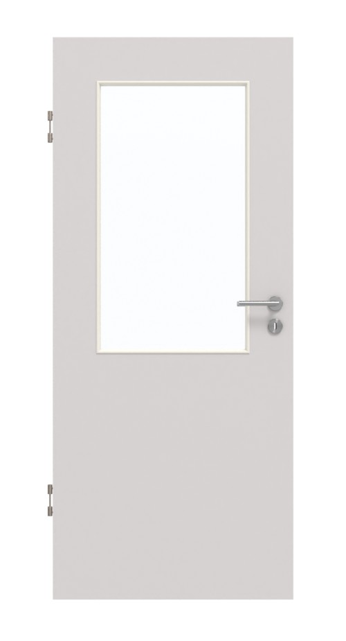 Wytrzymałe drzwi wewnętrzne w dekorze HPL U12188SD jasnoszarym z eleganckim przeszkleniem: