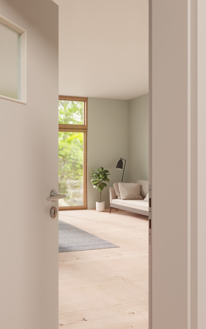 Stylowa drzwi wewnętrzne w dekorze HPL U12188SD jasnoszarym do przestrzeni prywatnej lub biura: