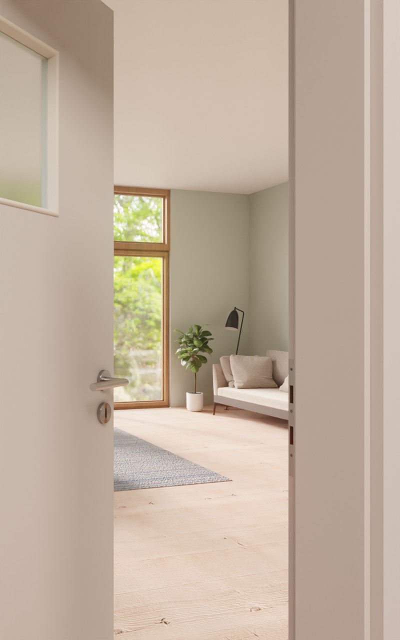 Drzwi wewnętrzne odporne na ścieranie w dekorze HPL U12188SD jasnoszarym z eleganckim przeszkleniem: