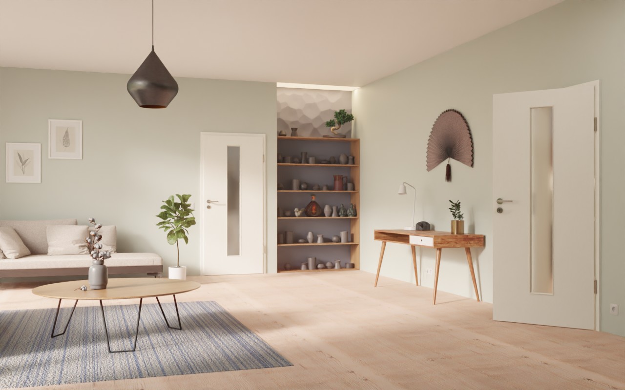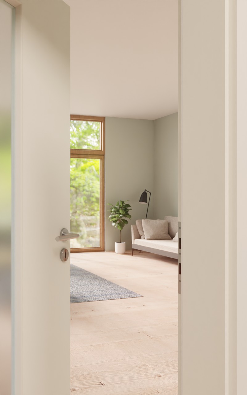 Atrakcyjne drzwi pokojowe w dekorze HPL W1000ST3 Premium Białe z eleganckim przeszkleniem:
