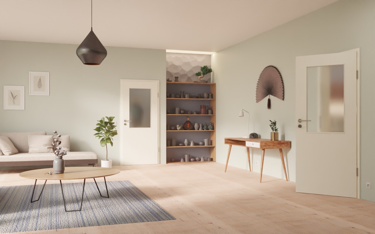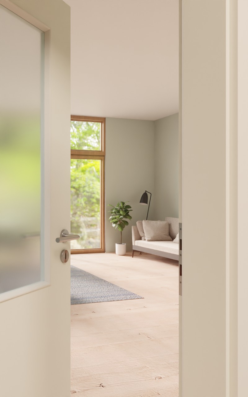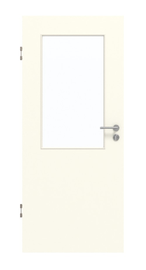 Odporne na uderzenia drzwi wewnętrzne w dekorze HPL W980ST15 Platynowa biel z eleganckim przeszkleniem:
