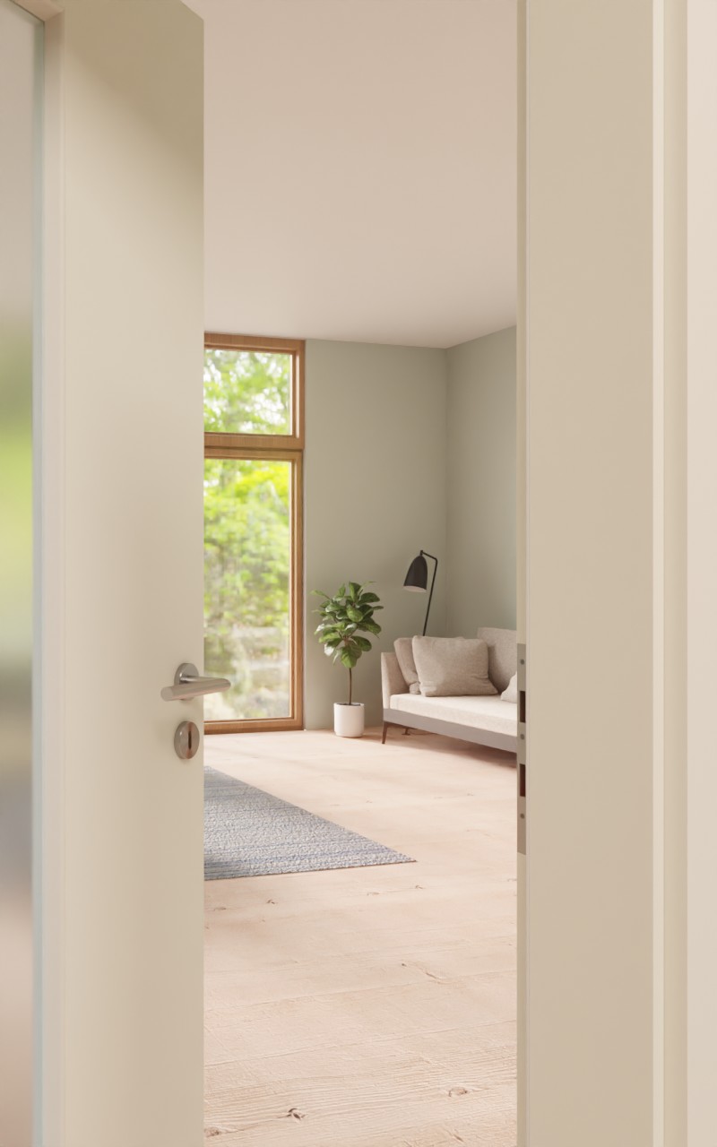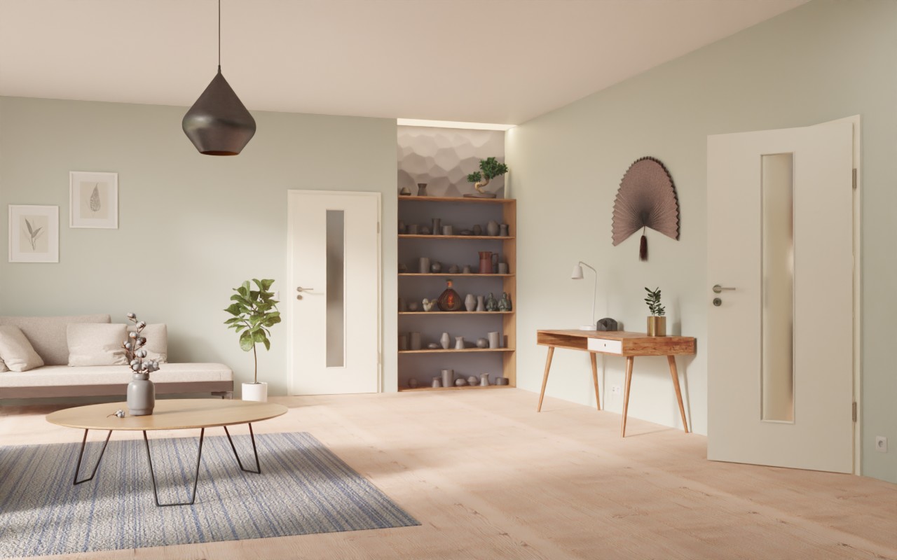 Wytrzymałe drzwi wewnętrzne w dekorze HPL W980ST15 Platynowa biel z pięknym przeszkleniem: