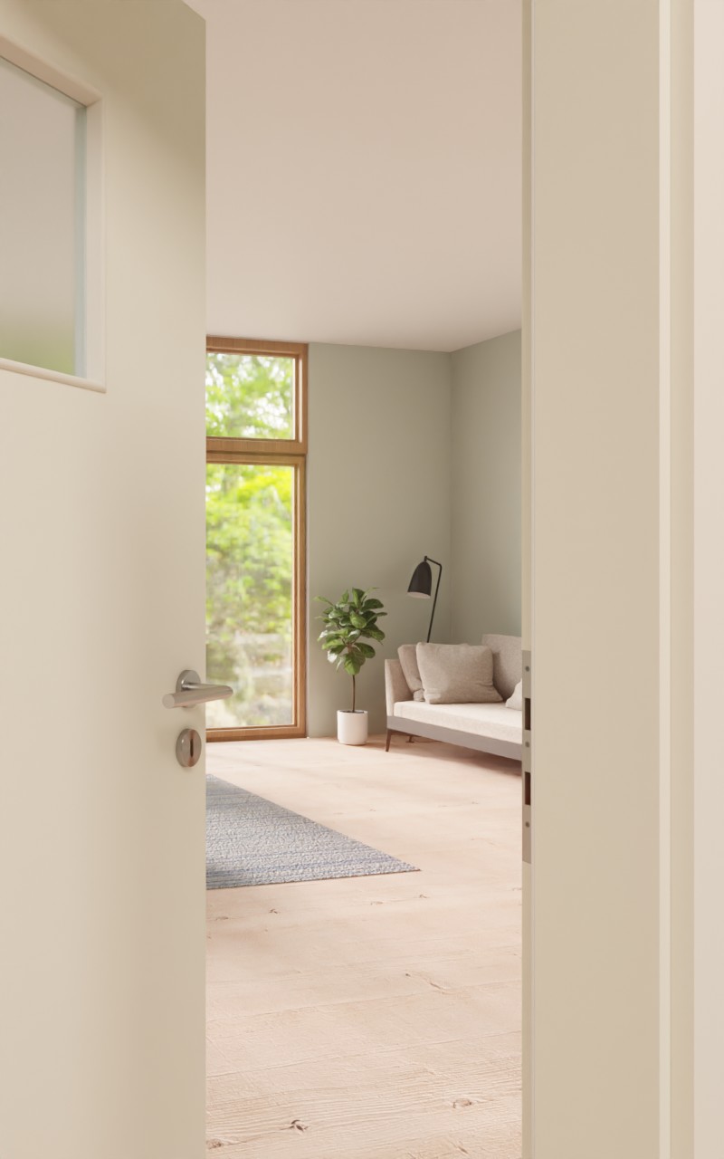Wytrzymałe drzwi wewnętrzne w dekorze HPL W980ST15 Platynowa biel z atrakcyjnym przeszkleniem: