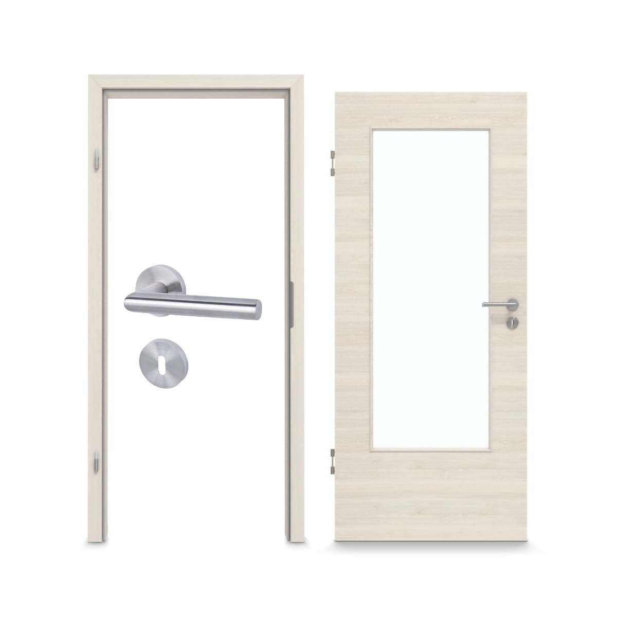 Praktyczne zakupy: Zestaw drzwi wewnętrznych LA-DIN firmy Garant zawiera skrzydło drzwiowe Authentic Perl Quer oraz pasującą do niego ościeżnicę. Całość dopełnia klamka.