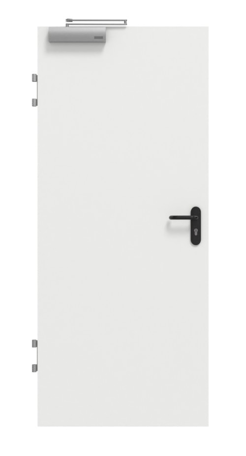 Biała drzwi przeciwpożarowe w klasie T30 z zamkiem górnym: