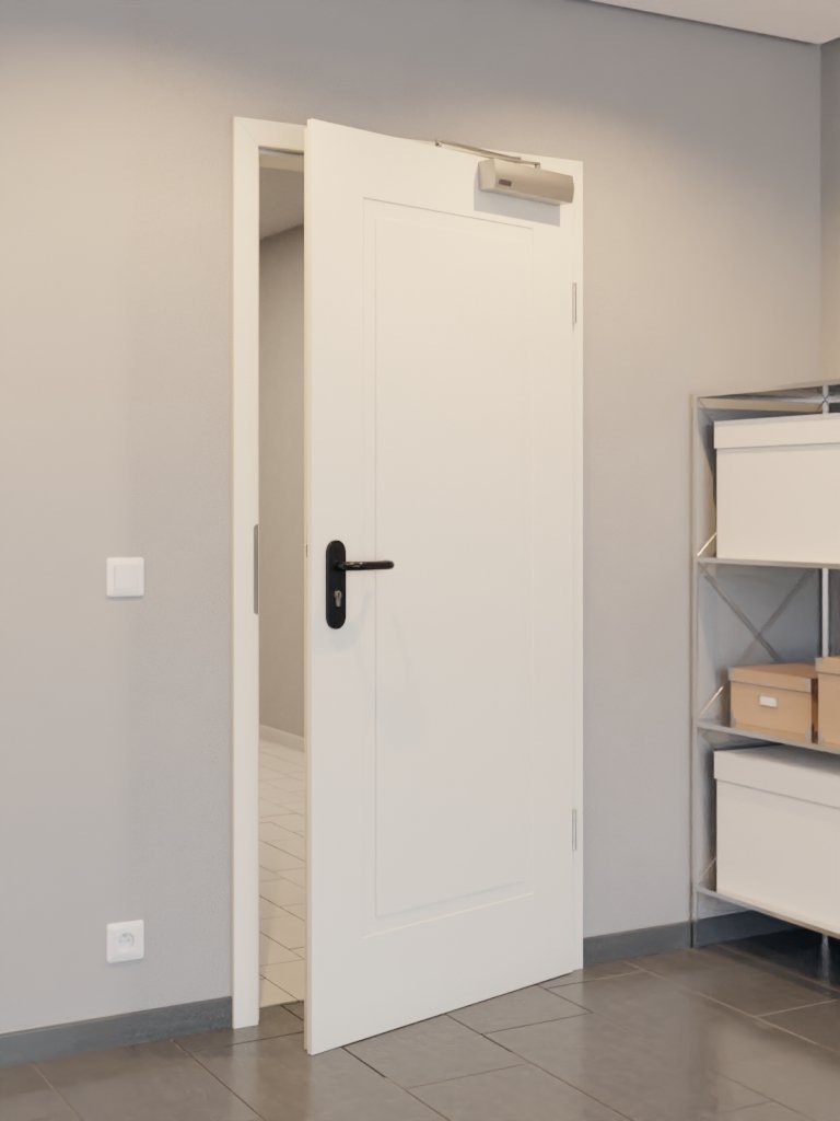 Stabilne drzwi przeciwpożarowe z wykończeniem białym lakierem przeciwdziałają przedostawaniu się ognia przez min. 30 minut: