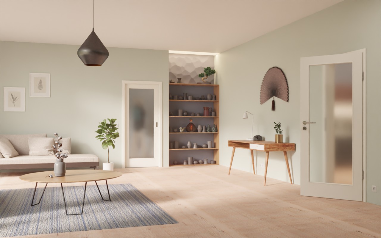 Dzięki dużym przeszkleniom w Twoim domu panuje przyjemna atmosfera. Drzwi przesuwne w ponadczasowym kolorze Pearl White pasują do wszystkich warunków montażu. Jasny odcień można połączyć z każdym wystrojem wnętrza. Wytrzymały materiał powierzchniowy CPL jest odporny na zużycie mechaniczne.
