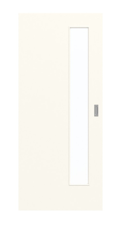 Wąskie przeszklenie po stronie zamka nadaje modelowi nowoczesny charakter. Drzwi przesuwne w stonowanym kolorze Pearl White zachwycają ponadczasową elegancją. Odcień biały gustownie komponuje się nawet z ciemnymi pomieszczeniami. Wierzchnia warstwa wykonana z CPL jest niezwykle trwała i odporna na zabrudzenia.