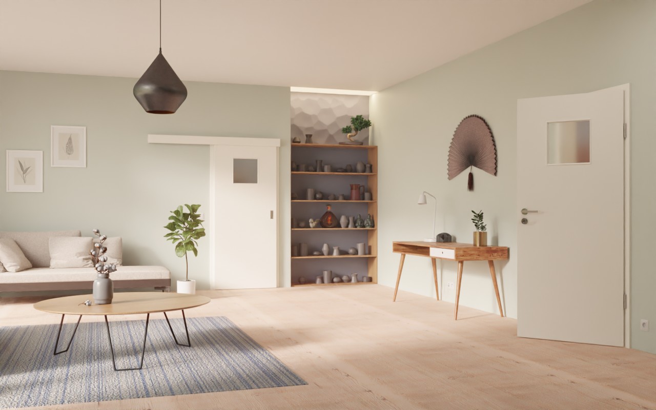 Odporne na zarysowania i uderzenia: Drzwi przesuwne LA-8 0105-60 Pearl White firmy Garant tworzą wrażenie otwartej przestrzeni.