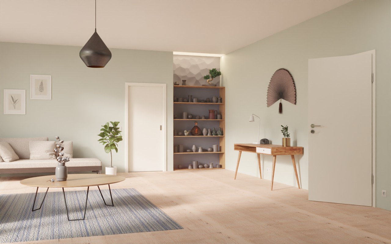 Drzwi są wykonane z płyty wiórowej lub płyty wiórowej pełnej. Dzięki certyfikacji w grupie obciążenia M nadaje się zarówno do użytku w biurach, jak i w domu. Prostokątny uchwyt wpuszczany muszlowy owalny z rowkiem prowadzącym w podłodze umożliwiają płynne otwieranie i zamykanie.