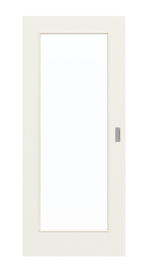 Światło w pomieszczeniach zapewnia duża powierzchnia szklana umieszczona na środku skrzydła drzwiowego. Minimalizm charakteryzuje jasnoszara powierzchnia. Kolor Rain jest nowoczesny i dyskretny. Powierzchnia wykonana z HPL jest odporna na zabrudzenia i obciążenia mechaniczne.