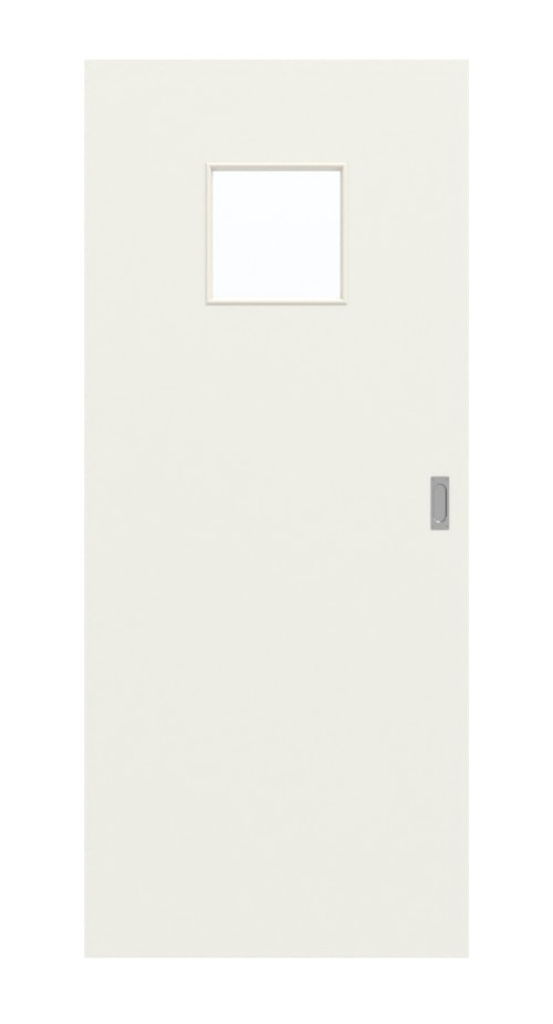 W górnej części skrzydła drzwiowego znajduje się kwadratowe wycięcie na szybę. Przezroczystość materiału gwarantuje jasną atmosferę w pomieszczeniu mieszkalnym. Minimalizm charakteryzuje jasnoszara powierzchnia. Dzięki subtelnemu charakterowi ten odcień można łączyć na wiele sposobów. Powierzchnia wykonana z HPL jest łatwa w pielęgnacji i odporna na zabrudzenia.