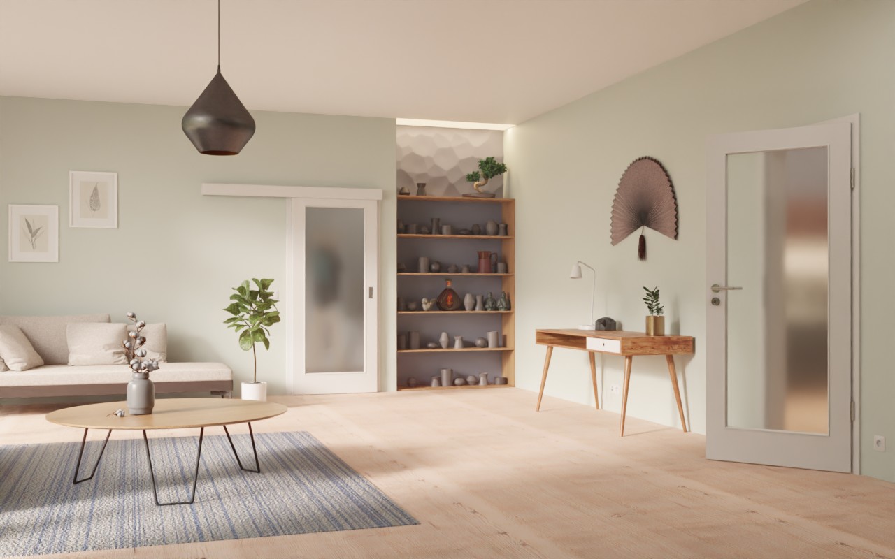 Dzięki dużemu wycięciu na szybę do pomieszczeń wpada dużo światła, tworząc przyjemną atmosferę we wnętrzu. Model z drzwiami przesuwnymi charakteryzuje się dyskretną elegancją. Odcień szarości Silver Grey można łączyć na wiele sposobów. Powierzchnia wykonana z CPL charakteryzuje się ogromną wytrzymałością.