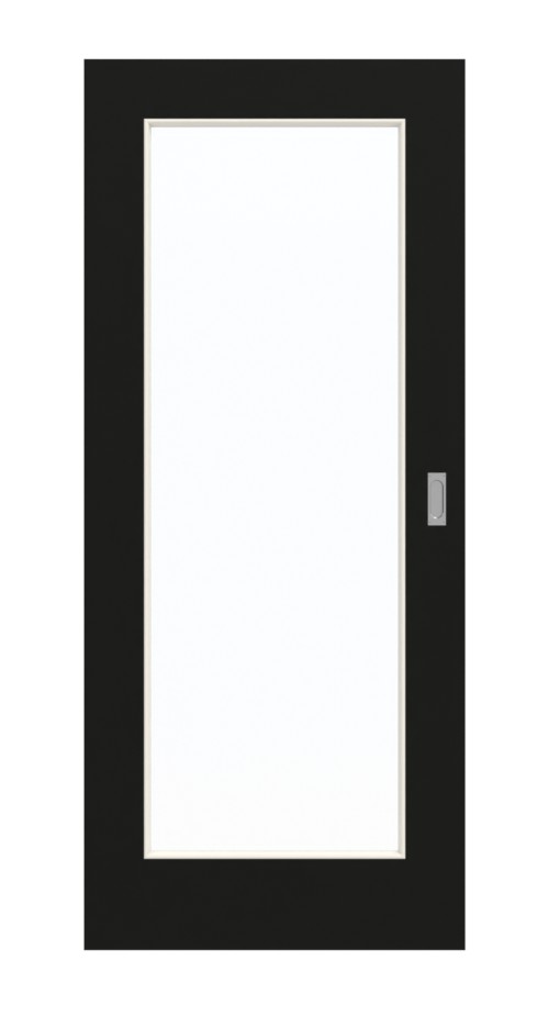 Model charakteryzuje się dużym przeszkleniem, które znajduje się pośrodku skrzydła drzwiowego. Czarne drzwi przesuwne emanują nowoczesną elegancją. Ciemny kolor tworzy spokojną atmosferę. Odporna na światło warstwa wierzchnia HPL wykazuje się wyjątkową wytrzymałością.