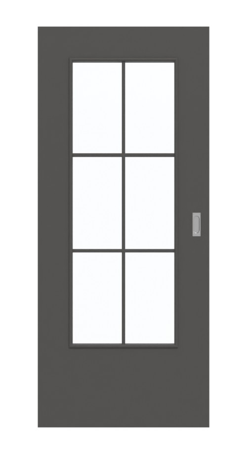 Duże przeszklenie umieszczone pośrodku skrzydła drzwiowego zapewnia jasne wnętrze. Elegancka rama z szprosami dzieli szkło na sześć mniejszych prostokątów. Drzwi przesuwne w harmonijnym kolorze Ebony przekonują swoim nowoczesnym wyglądem. Ciemna szarośćstylowo komponuje się z nowoczesnym wystrojem wnętrz. Wierzchnia warstwa z CPL jest odporna na zabrudzenia i obciążenia mechaniczne.