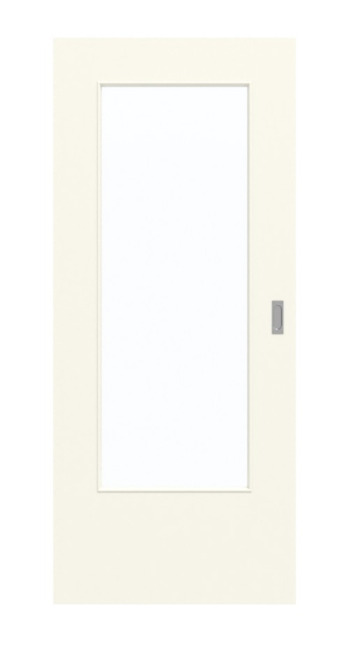 Umieszczone pośrodku przeszklenie zapewnia jasność i przyjazną atmosferę w pokoju. Drzwi przesuwne białe prezentują się elegancko. Jasny kolor powierzchni jest stonowany i pasuje do każdego stylu wnętrza. Powierzchnia wykonana z CPL charakteryzuje się ogromną wytrzymałością.
