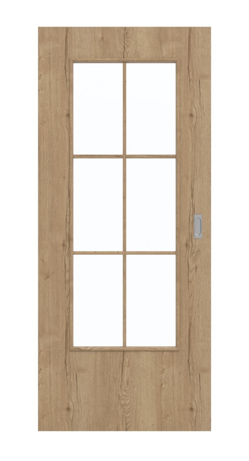 Umieszczony pośrodku otwór na światło zapewnia jasność i przyjemną atmosferę w Twoim domu. Ozdabiają go proste, równomiernie rozmieszczone szczeble. Drzwi przesuwne w wykończeniu imitującym dąb stanowią żywy akcent w aranżacji wnętrz. Ciemne słoje i sęki wyróżniają się na tle naturalnie brązowego tła. Całość wyróżnia się rustykalnym urokiem. Wierzchnia warstwa z HPL jest wyjątkowo odporna na obciążenia mechaniczne, a także na działanie światła i ciepła.