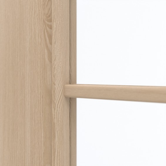 Szerokie przeszklenie w górnej części skrzydła drzwiowego stanowi charakterystyczny element stylistyczny tych drzwi. Delikatne szprosy dzielą go na mniejsze pola. Przezroczystość powierzchni szklanej zapewnia jasność w Twoim domu. Ten model drzwi wyróżnia się naturalnym wykończeniem drewnopodobnym. Płynne, delikatne słoje przeplatają się na skrzydle drzwi. Odcinają się od ciepłego brązowego tła. Materiał powierzchniowy wykonany z CPL jest wytrzymały i odporny na zarysowania.