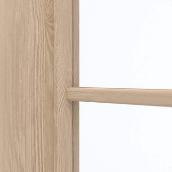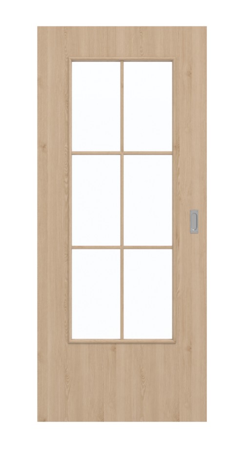 Drzwi wykonane są z płyty wiórowej pełnej. Zostały sklasyfikowane w grupie obciążenia M. Oznacza to, że można ich używać zarówno w biurze, jak i w domu. Rowek prowadzący podłogowy w połączeniu z prostokątnym uchwytem wpuszczanym muszlowym umożliwia płynne otwieranie i zamykanie. Oba elementy są już wliczone w cenę drzwi.