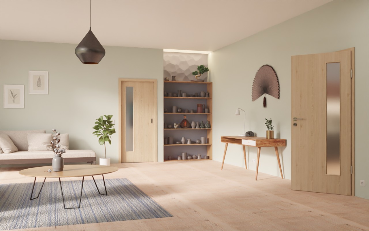 Te drzwi zapewniają przyjemną otwartość przestrzeni mieszkalnej.