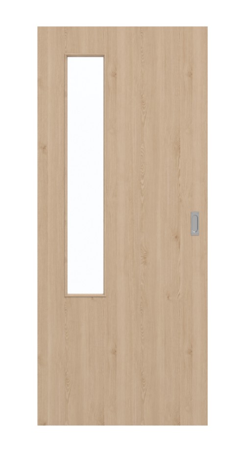 Wąskie wycięcie na szybę po stronie zawiasów wpuszcza światło do wnętrza, nadając mu przyjazny charakter. Model drzwi przesuwnych z dekorem drewna zachwyca swoim naturalnym wyglądem. Na całej długości skrzydła drzwiowego widoczne są delikatne usłojenia i drobne sęki. Dzięki ciepłemu brązowemu kolorowi drzwi tworzą przytulną atmosferę w Twoim wnętrzu. Wytrzymała powierzchnia HPL jest odporna na działanie światła i ciepła.