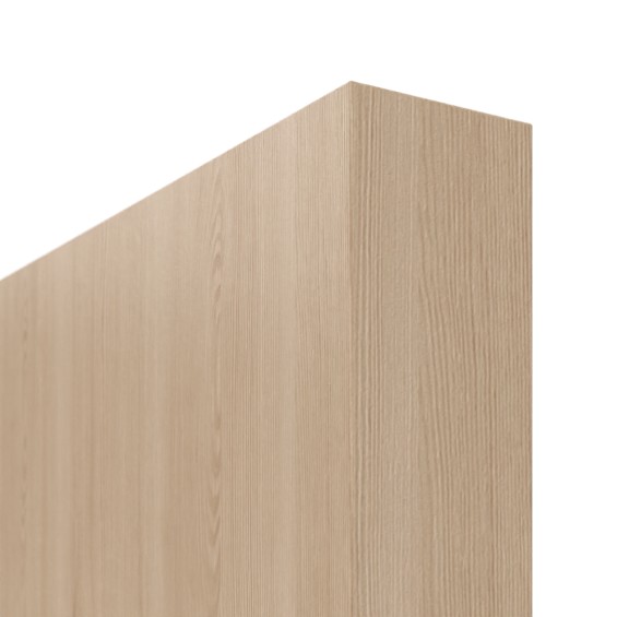 Jasną atmosferę we wnętrzu zapewnia duży otwór wpuszczony w środkowej części skrzydła drzwi. Drzwi przesuwne o wyglądzie drewna wyróżniają się swoim autentycznym charakterem. Na całej długości skrzydła drzwiowego widoczne są delikatne usłojenia i drobne sęki. Kontrastują z naturalnie brązowym tłem. Powierzchnia HPL jest odporna na działanie światła i niezwykle wytrzymała.