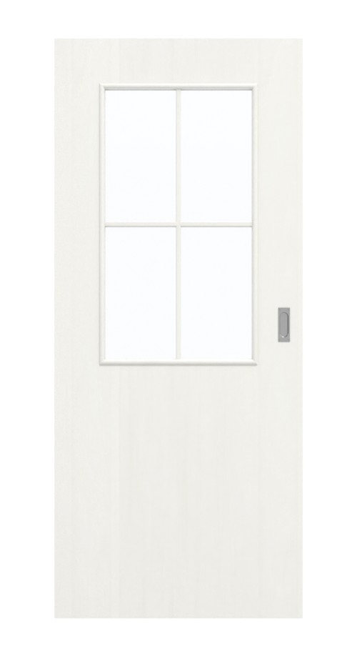 Prostokątne wycięcie na szybę z elegancką ramą z szprosami zapewnia dużo światła w Twoim domu. Rozciąga się ono w górnej części prawie na całej szerokości skrzydła drzwiowego. Drzwi przesuwne pasują do każdego stylu wnętrza. Wzdłuż całej długości skrzydła drzwiowego widoczne są filigranowe usłojenia, które podkreślają autentyczny biały dekor drewna. Ogólny obraz sprawia wrażenie harmonijnego. Wierzchnia warstwa wykonana z CPL jest odporna na zużycie mechaniczne.