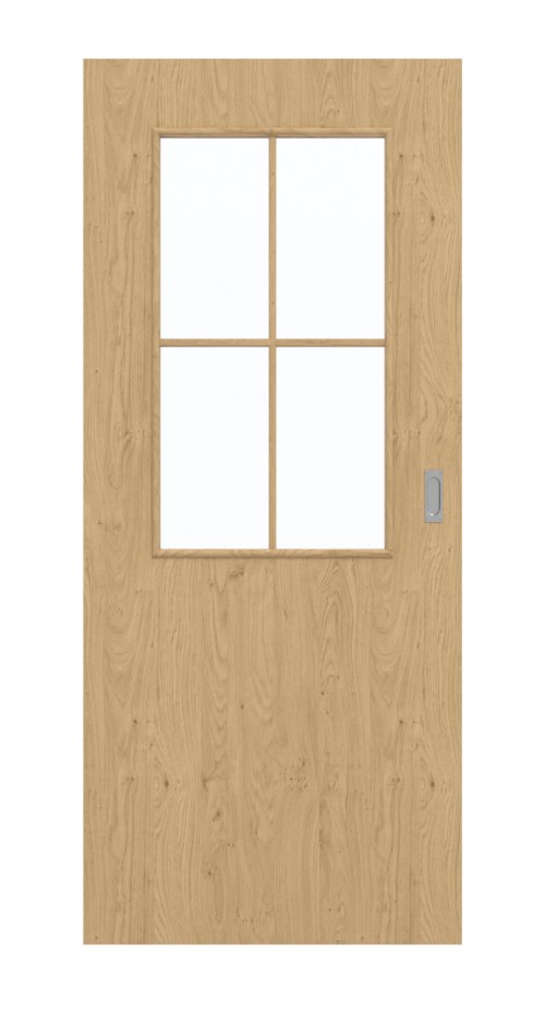 Drzwi wykonane są z płyty wiórowej pełnej. Dzięki klasyfikacji do grupy obciążenia M można go stosować zarówno w biurach, jak i budynkach mieszkalnych. Rowek prowadzący podłogowy w połączeniu z prostokątnym uchwytem wpuszczanym muszlowym umożliwia płynne otwieranie i zamykanie. Oba elementy są już wliczone w cenę drzwi.