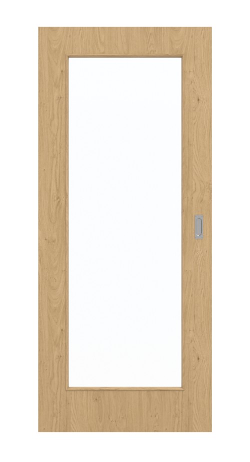 Dzięki dużemu przeszkleniu w środkowej części drzwi możesz cieszyć się jasnym wnętrzem swoich pomieszczeń. Wyraziste usłojenia i delikatne sęki sprawiają, że drzwi przesuwne przyciągają wzrok. Dekor dębowy stanowi akcent w Twoim wnętrzu. Naturalny odcień brązu tworzy przyjazną atmosferę. Stabilna i łatwa w pielęgnacji powierzchnia z HPL jest odporna na obciążenia mechaniczne i wysoką temperaturę.