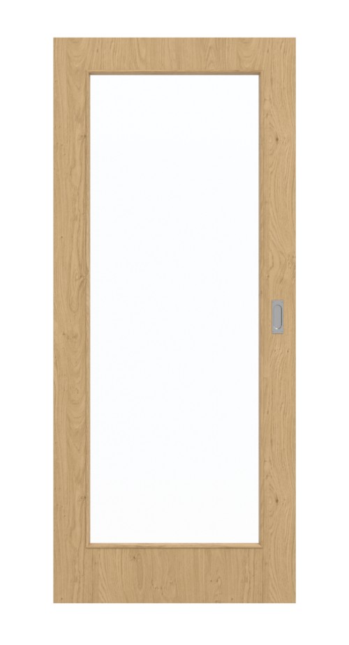 Wyraziste przeszklenie zapewnia jasność w pomieszczeniach i stanowi charakterystyczny element stylistyczny skrzydła drzwiowego. Wyraźne usłojenia i sęki stanowią charakterystyczny element wzornictwa drzwi przesuwnych. Dzięki ponadczasowemu dekorowi w kolorze dębu drzwi pasują do każdego otoczenia. Naturalne odcienie brązu dopełniają ten projekt. Wytrzymała powierzchnia HPL jest odporna na działanie światła i ciepła.