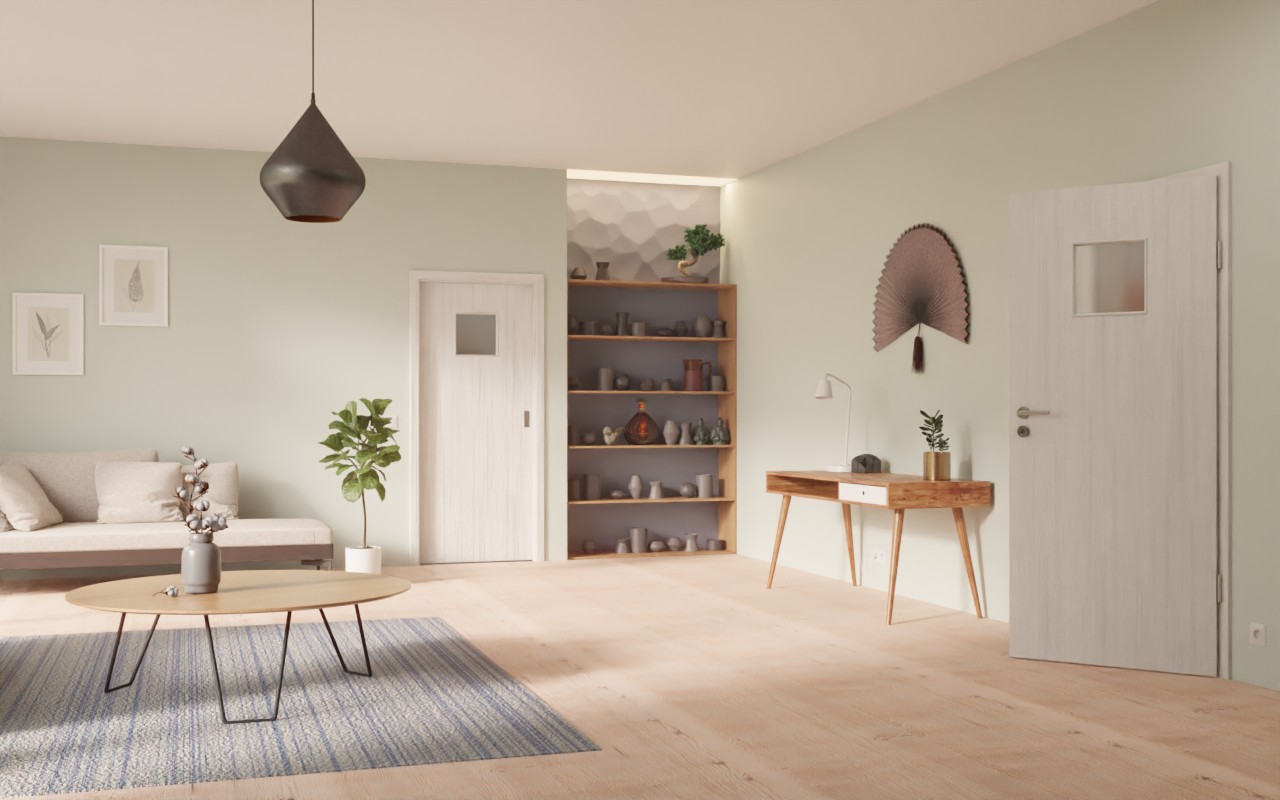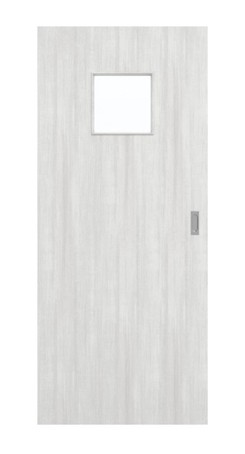 Szklany wstaw na wysokości oczu zapewnia jasność i przyjazną atmosferę w Twoich pomieszczeniach. Modne drzwi prezentują się w szarym dekorze drewna. Pionowe usłojenie zdobi skrzydło drzwi. Całość zachwyca swoim chłodnym urokiem. Materiał powierzchniowy wykonany jest z łatwego w pielęgnacji i wytrzymałego CPL.