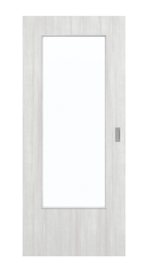 Przeszklenie w środku drzwi wprowadza do wnętrz jasność i przyjazną atmosferę. Model drzwi przesuwanych w szarej okleinie drewnianej nadaje wnętrzu modny akcent. Jak delikatne cienie, pionowe usłojenie ciągnie się po skrzydle drzwi. Dzięki chłodnemu szarości, model drzwi idealnie pasuje do nowoczesnego wystroju wnętrz. Powierzchnia CPL jest niezwykle odporna na czynniki zewnętrzne.