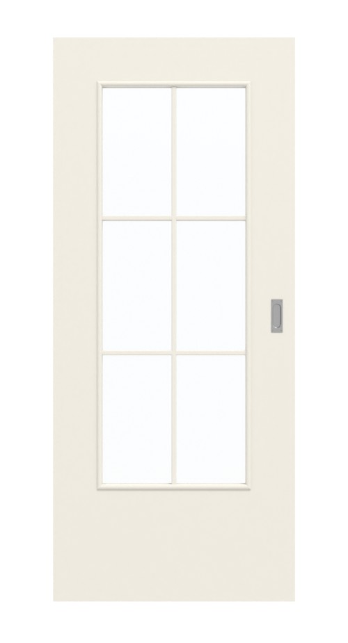 Otwór na światło pośrodku skrzydła drzwi zapewnia jasność i przyjazną atmosferę we wnętrzu. Jest elegancko podzielony za pomocą nałożonych szprych. Ten model drzwi przesuwnych przekonuje swoją wszechstronnością. Dzięki powierzchni w kolorze białym z efektem lakieru drzwi pasują do każdego stylu wnętrza. Warstwa wierzchnia wykonana z HPL jest bardzo trwała i odporna na zabrudzenia.