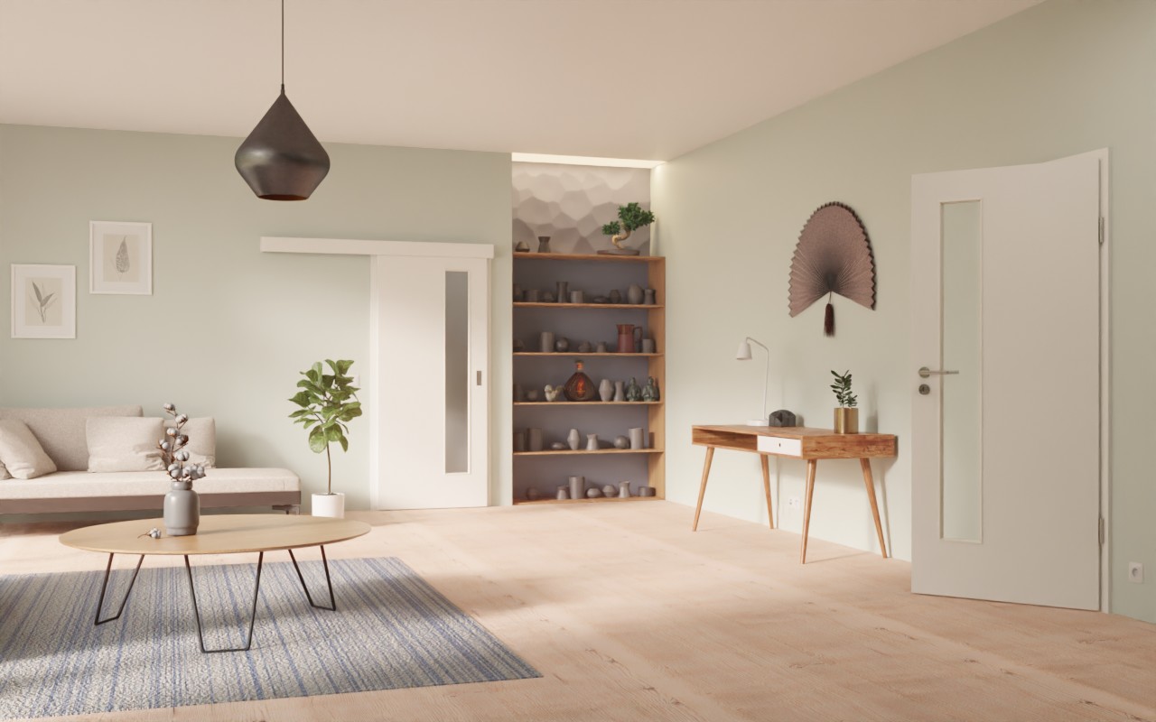 Praktyczne drzwi przesuwne w kolorze białym lakierowanym 9016 od firmy GARANT: