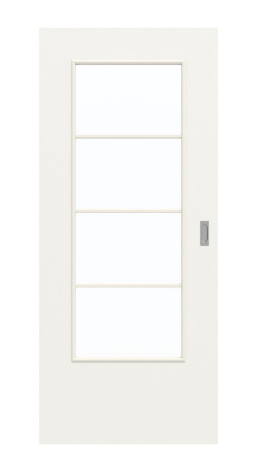 Dzięki dużemu przeszkleniu pośrodku skrzydła drzwi do pomieszczeń wpada mnóstwo światła. Trzy poziome szczeble nadają mu nowoczesny wygląd. Drzwi przesuwne w kolorze białym wyróżniają się dyskretną elegancją. Jasny kolor jest uniwersalny i pasuje do każdego stylu wnętrza. Powierzchnia z płyty HPL okazuje się niezwykle wytrzymała i odporna na wysoką temperaturę.