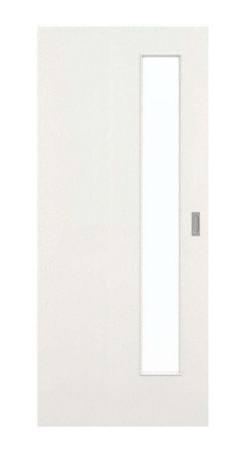Wąskie przeszklenie po stronie zamka nadaje modelowi nowoczesny charakter. Te drzwi przesuwne wyróżniają się ponadczasową elegancją. Białe skrzydło drzwiowe pasuje do każdego stylu wnętrza. Wyrafinowanym akcentem jest delikatna faktura powierzchni. Powierzchnia wykonana z CPL charakteryzuje się ogromną wytrzymałością.