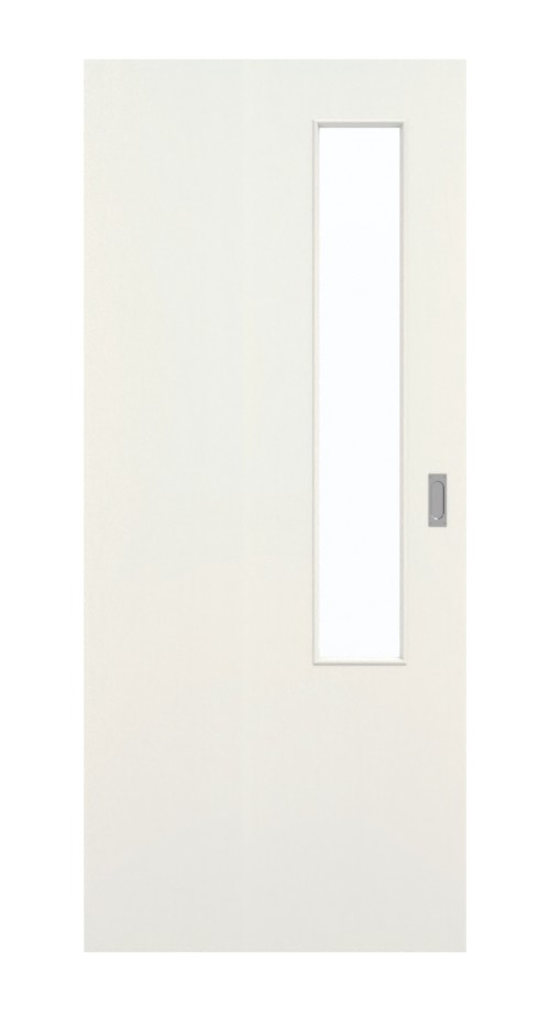 W bezpośrednim sąsiedztwie klamki znajduje się wąskie wycięcie na szybę. Nie tylko nadaje to drzwiom cechy szczególne, ale także wpuszcza więcej światła do pomieszczeń. Drzwi przesuwne zachwycają ponadczasowym wyglądem. Białe skrzydło drzwiowe pasuje do każdego stylu wnętrza. Wygląd całości dopełnia drobnoziarnista powierzchnia. Wierzchnia warstwa z CPL jest odporna na zabrudzenia i obciążenia mechaniczne.