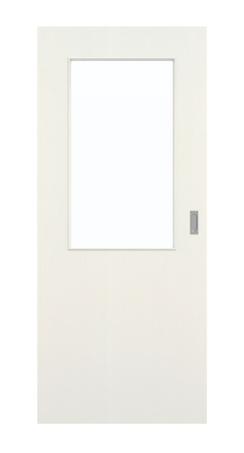 Jasną atmosferę w pomieszczeniach tworzy obszerne wycięcie na szybę, które zdobi górną część skrzydła drzwiowego. Te drzwi przesuwne wyróżniają się ponadczasowym wyglądem. Dzięki białej kolorystyce drzwi te można zastosować w każdym otoczeniu. Delikatna struktura powierzchni zapewnia przyjemne wrażenia dotykowe. Warstwa wierzchnia CPL okazuje się niezwykle wytrzymała.