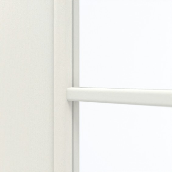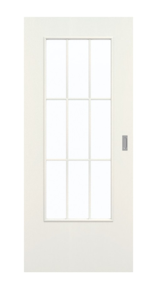 Dzięki dużemu wycięciu na szybę w środkowej części skrzydła drzwiowego do pomieszczeń wpada mnóstwo światła. Delikatne szprosy dzielą go na dziewięć równych segmentów. Prosty design to cecha charakterystyczna drzwi. Dzięki białemu designowi drzwi można zastosować w każdych warunków montażowych. Lekko strukturyzowana powierzchnia dopełnia minimalistyczny wygląd całości. Warstwa wierzchnia CPL okazuje się niezwykle wytrzymała.