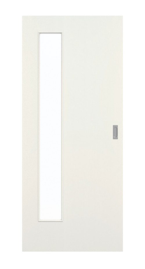 Jasność i przyjazna atmosfera przenikają do wnętrz dzięki wąskiemu wycięciu na szybę po stronie zawiasów. Te drzwi przesuwne mają ponadczasowy wygląd. Biała farba do powierzchni pasuje do każdego stylu wnętrza. Delikatnie teksturowana powierzchnia nadaje całości spójny wygląd. Powierzchnia HPL okazuje się niezwykle wytrzymała i odporna na wysoką temperaturę.