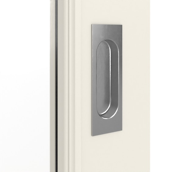 Drzwi przesuwne sprostają codziennym wymaganiom dzięki solidnej wkładce profilowej. Już w wersji standardowej model posiada rowek prowadzący na podłodze oraz prostokątną muszlę uchwytu z owalnym wycięciem o wyglądzie stali nierdzewnej.