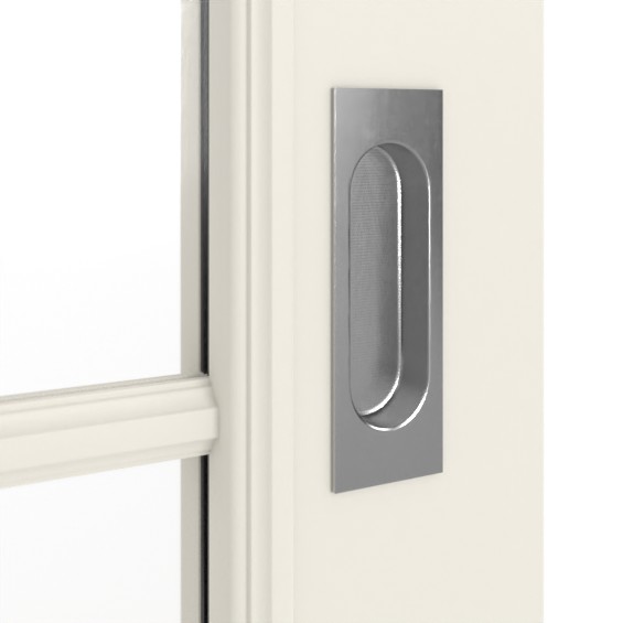 Wewnątrz skrzydła drzwi przesuwnego znajduje się stabilizująca płyta wiórowa. Wraz ze skrzydłem drzwi otrzymują Państwo również prowadnicę podłogową oraz kwadratowy uchwyt z owalnym chwytem w wyglądzie stali nierdzewnej.