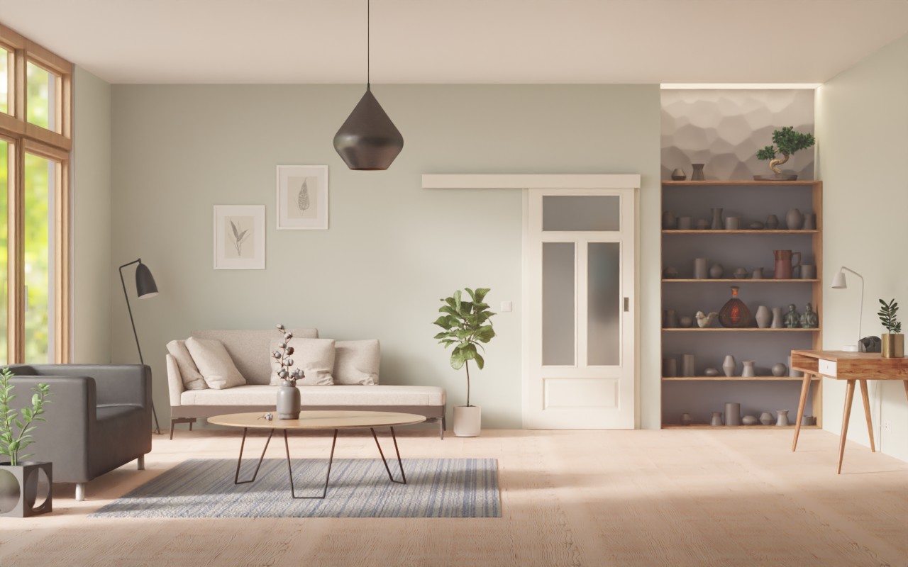Urokliwy element dekoracyjny z białym wykończeniem: Oszczędność miejsca i atrakcyjny design łączą się w drzwiach przesuwnych Como CKL1/3 od Garant.