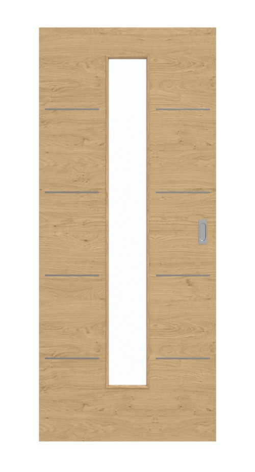 Smukłe wycięcie na szybę, ozdobione po obu stronach drobnymi lizenami nadaje drzwiom nowoczesny wygląd. Atrakcyjny dekor Authentic Asteiche zachwyca wzdłużnym usłojeniem, sporadycznymi śladami po sękach i autentycznym wyglądem drewna. Łatwa w pielęgnacji powierzchnia CPL jest odporna na zarysowania i ścieranie.